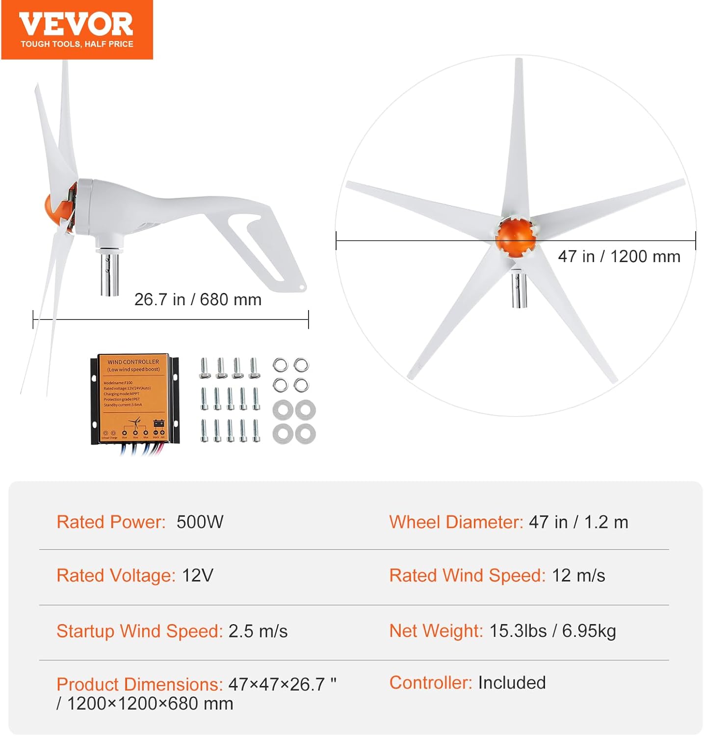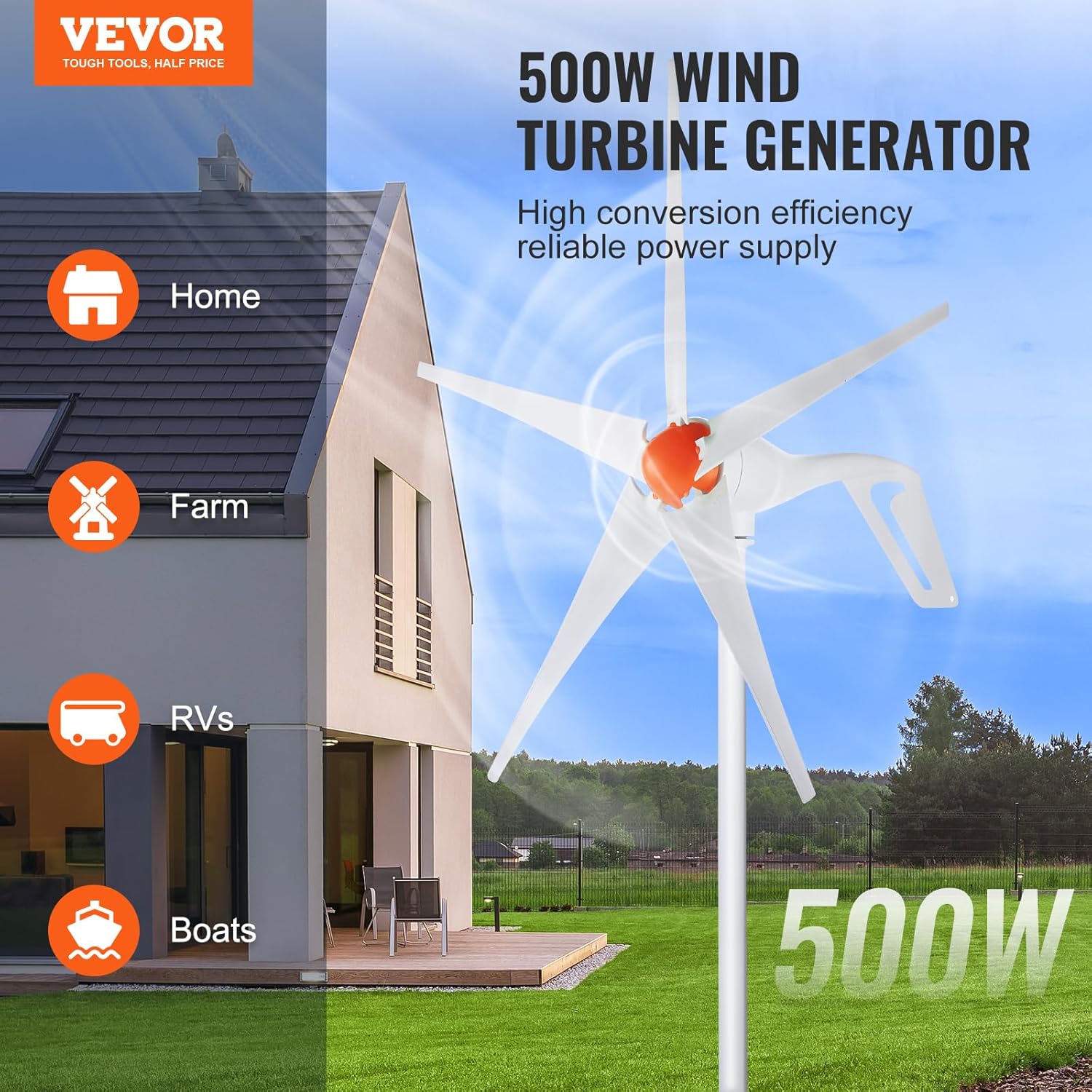 Discover the power of renewable energy with the VEVOR 500W Wind Turbine Generator. Designed to deliver high-efficiency output and optimal wind energy utilization, this versatile wind turbine is perfect for powering homes, farms, RVs, boats, and more. Experience reliable performance and durability with advanced technology and premium materials.